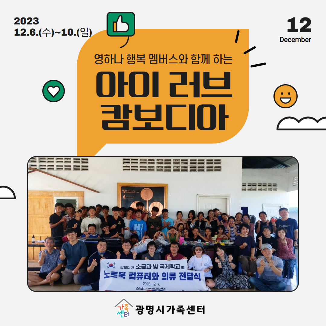 ±¤¸í½Ã°¡Á·¼¾ÅÍ´Â »ç´Ü¹ýÀÎ À§´Ï¹ö½ºÀÇ ÈÄ¿øÀ¸·Î 2023³â 12¿ù 6ÀϺÎÅÍ 10ÀϱîÁö 3¹Ú