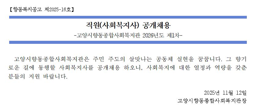 [¿¬Àå°ø°í] °í¾ç½ÃÇ⵿Á¾ÇÕ»çȸº¹Áö°ü Á÷¿ø(»çȸº¹Áö»ç) °ø°³Ã¤¿ë