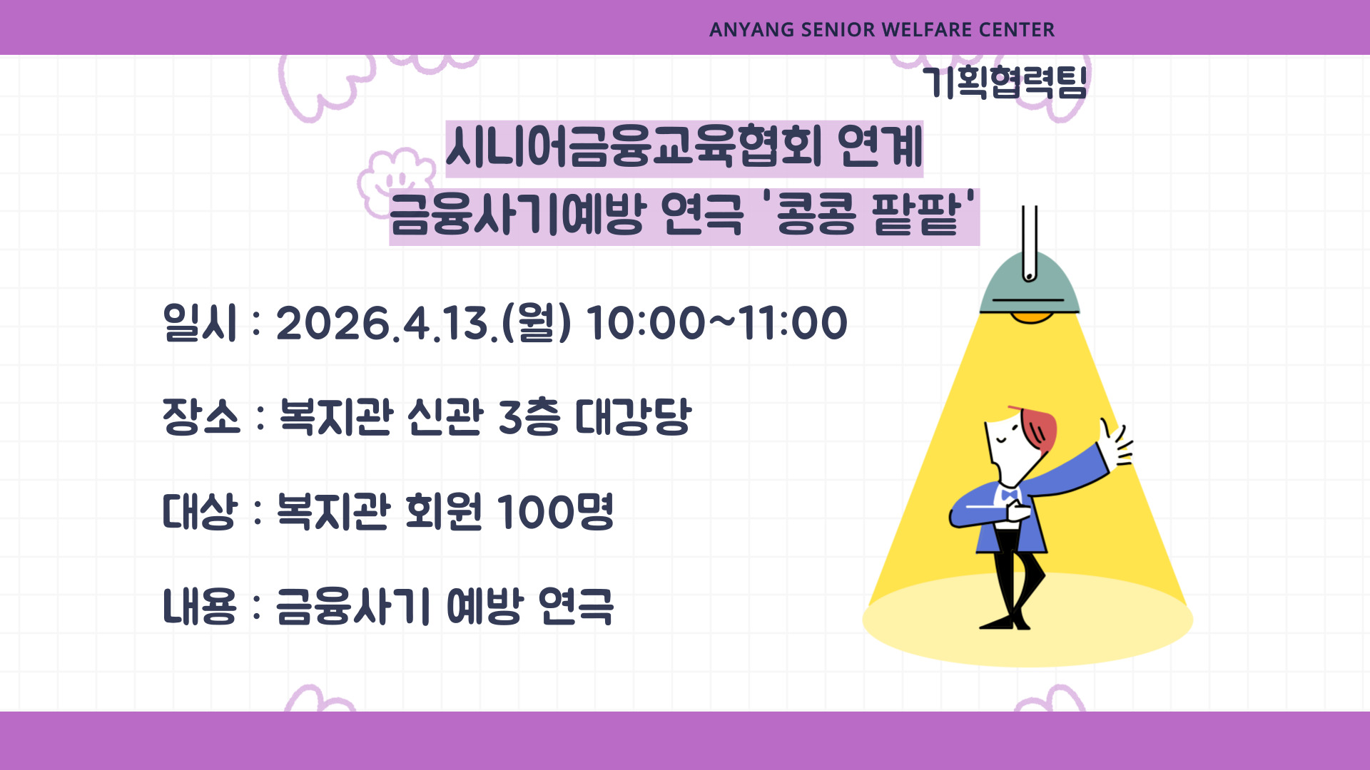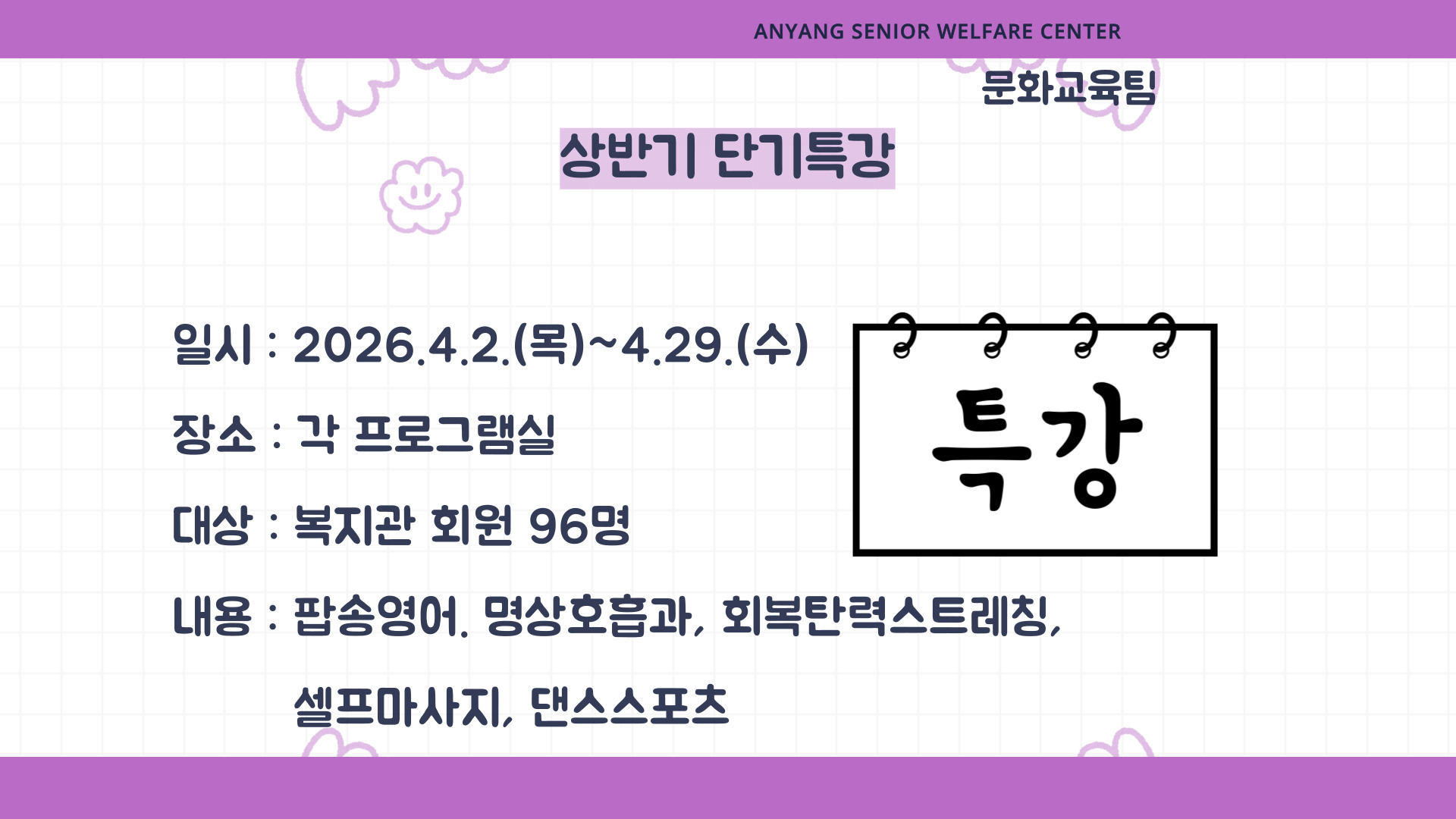 ☃️4¿ù¿¡µµ º¹Áö°üÀº ¾î¸£½ÅµéÀ» À§ÇØ ´Ù¾çÇÑ ÇÁ·Î±×·¥À» ÁغñÇϰí ÀÖ½À´Ï´Ù. ¸¹Àº Âü¿©¿Í °ü½É ºÎʵ右´Ï´Ù☃️