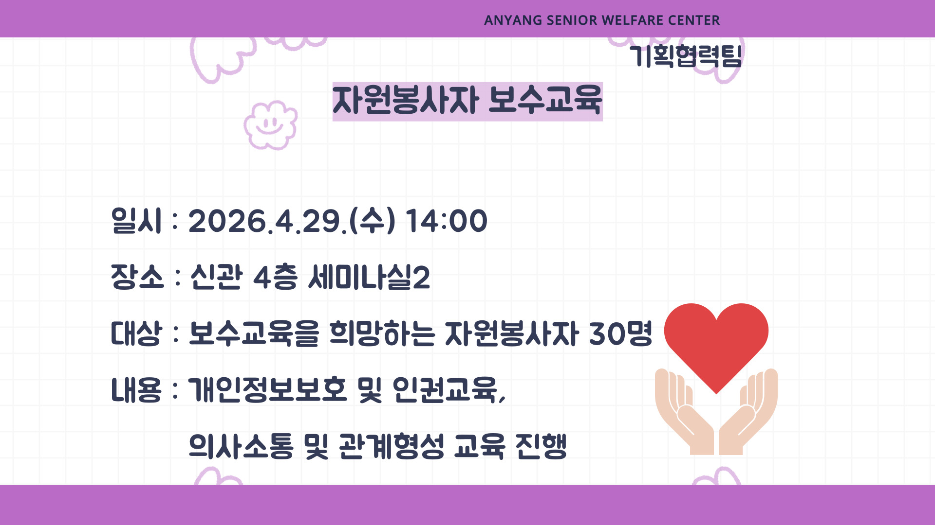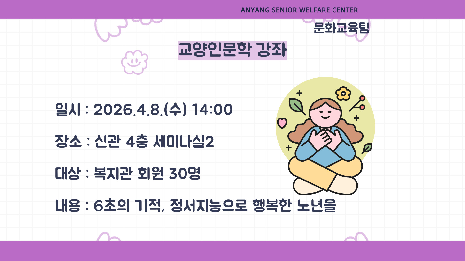 ¾È¾ç½Ã³ëÀÎÁ¾ÇÕº¹Áö°ü ´º½º·¹ÅÍ 26³â 4¿ùÈ£°¡ ³ª¿Ô½À´Ï´Ù✨