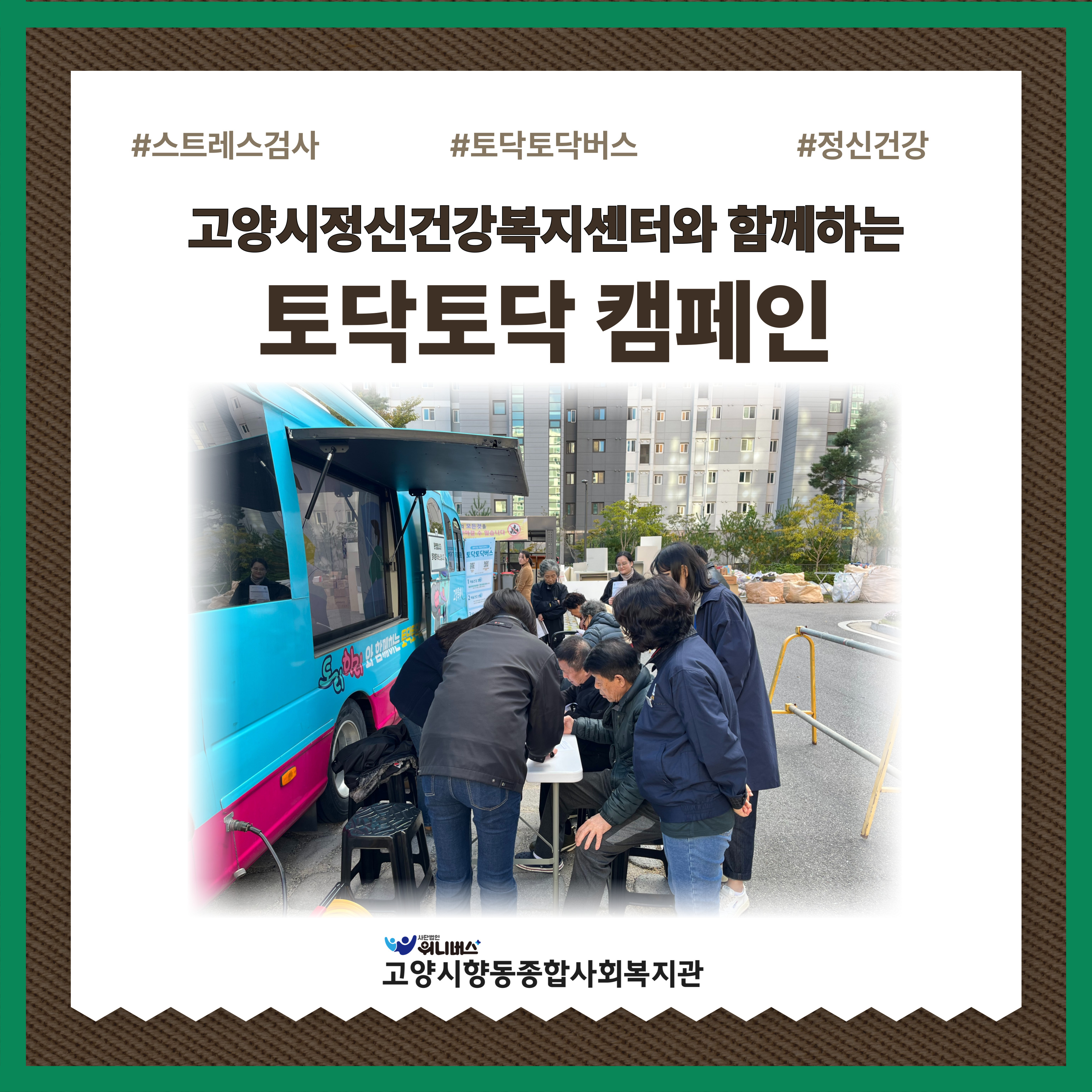 °í¾ç½ÃÇ⵿Á¾ÇÕ»çȸº¹Áö°ü¿¡¼´Â Á¤½Å°Ç°º¹Áö¼¾ÅÍ¿Í Çù¾÷ÇÏ¿© Åä´ÚÅä´ÚÄ·ÆäÀÎÀ» ÁøÇàÇß½À´Ï´Ù.