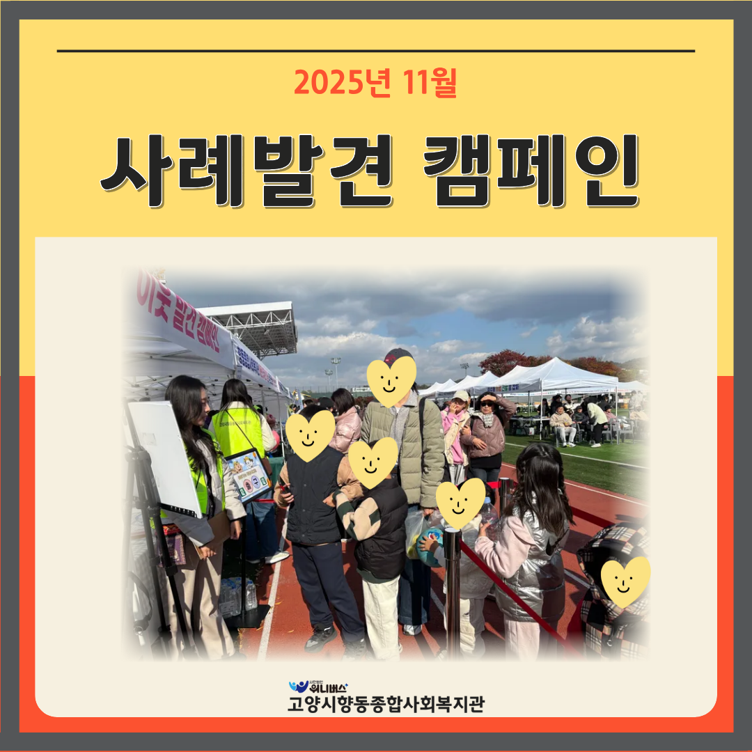 °í¾ç½ÃÇ⵿Á¾ÇÕ»çȸº¹Áö°ü¿¡¼´Â 11¿ù »ç·Ê¹ß°ß Ä·ÆäÀΠã¾Æ°¡´Â Ç⵿º¹Áö°üÀ» ÁøÇàÇß½À´Ï´Ù.