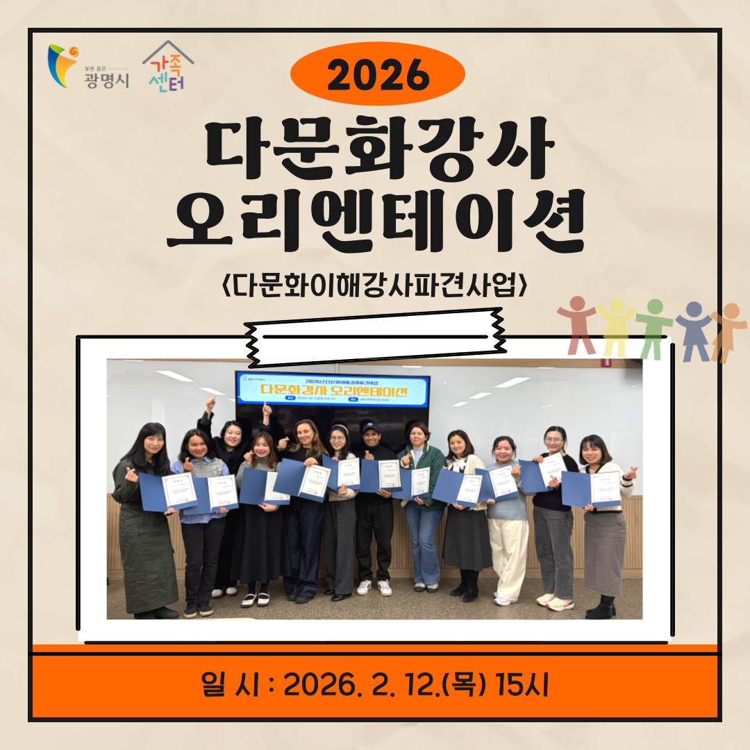 ±¤¸í½Ã°¡Á·¼¾ÅÍ´Â 2026³â ´Ù¹®ÈÀÌÇØ°»çÆÄ°ß»ç¾÷ÀÇ ¿øÈ°ÇÑ ¿î¿µÀ» À§ÇØ ´Ù¹®È°»ç ¿À¸®¿£Å×À̼ÇÀ» ÁøÇàÇß½À´Ï´Ù.À̹ø ¿À¸®¿£Å×À̼ǿ¡¼´Â »ç¾÷ÀÇ ¿î¿µ ¸ñÀû°ú ÃßÁø ¹æÇâÀ» °øÀ¯Çϰí, ±³À° ÁøÇà ¹æ¹ý ¹× °»ç Ȱµ¿ ..