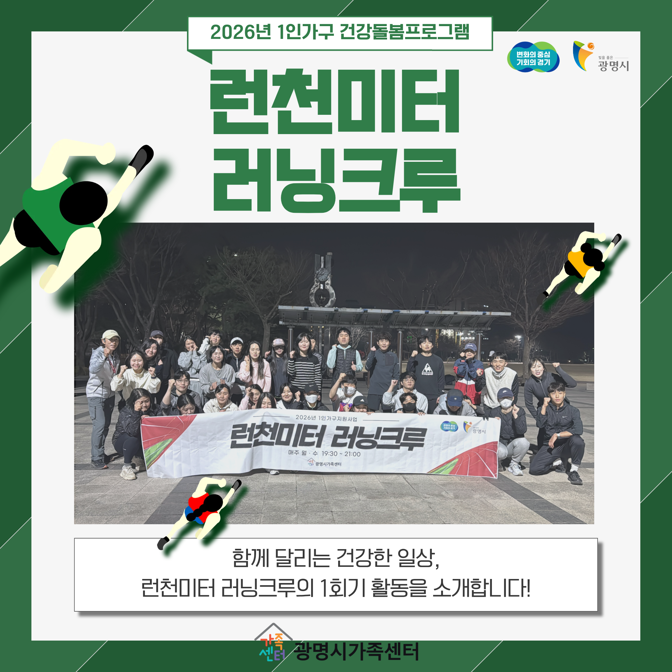 2026³â 1Àΰ¡±¸Áö¿ø»ç¾÷ °Ç°µ¹º½ÇÁ·Î±×·¥ '·±Ãµ¹ÌÅÍ ·¯´×Å©·ç'ÀÇ 1ȸ±â°¡ ÁøÇàµÇ¾ú½À´Ï´Ù!Âü¿©ÀÚµé°ú ù ¸¸³²À» ÅëÇØ ¼·Î¸¦ ¾Ë¾Æ°¡°í, ·¯´×À» À§ÇÑ º¸°¿îµ¿À¸·Î ù °ÉÀ½À» ½ÃÀÛÇß½À´Ï´Ù.·±Ãµ¹ÌÅÍ ·¯´×Å©·çÀÇ È°µ¿..
