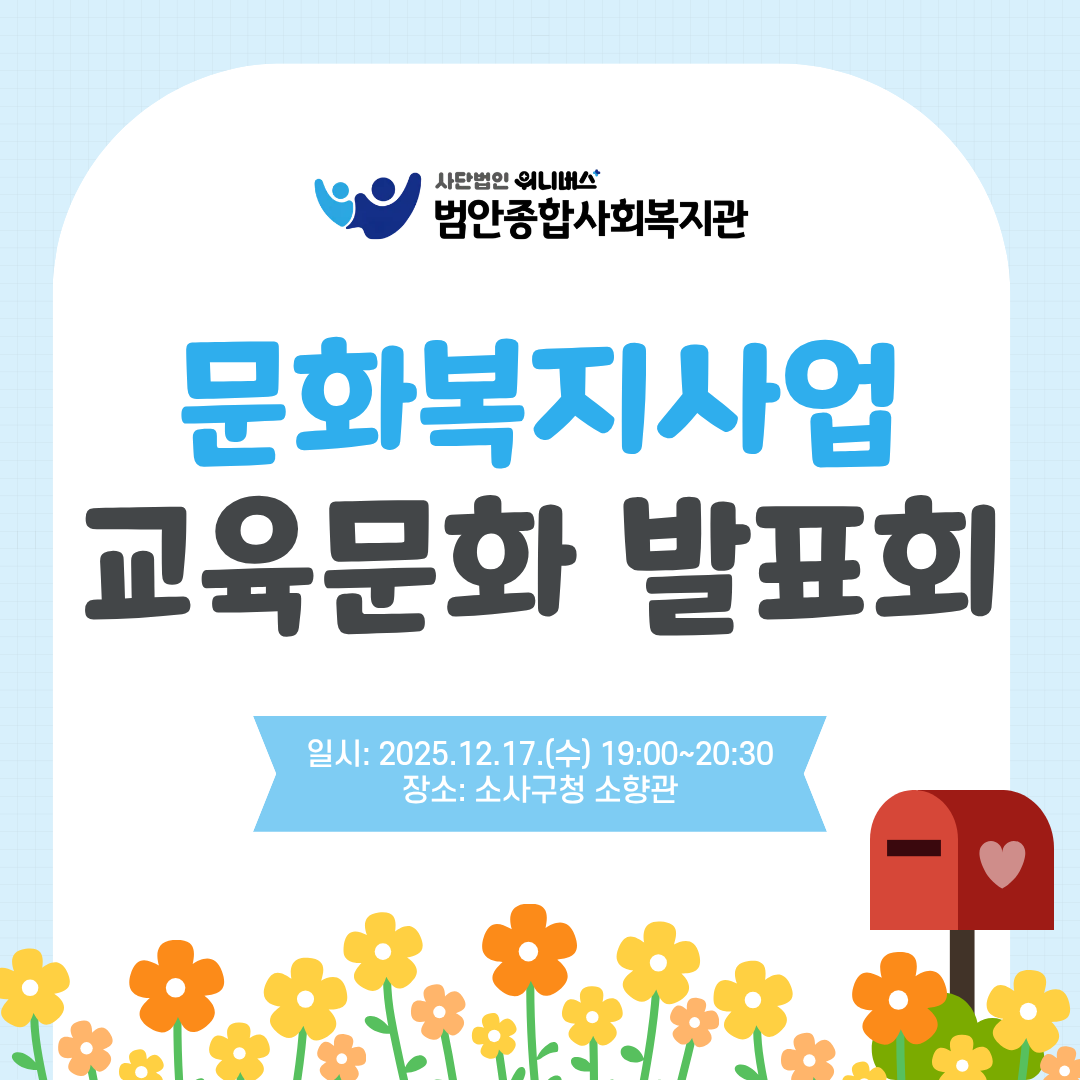 [¹ü¾ÈÁ¾ÇÕ»çȸº¹Áö°ü] ¹®Èº¹Áö»ç¾÷ ±³À°¹®È ¹ßǥȸ