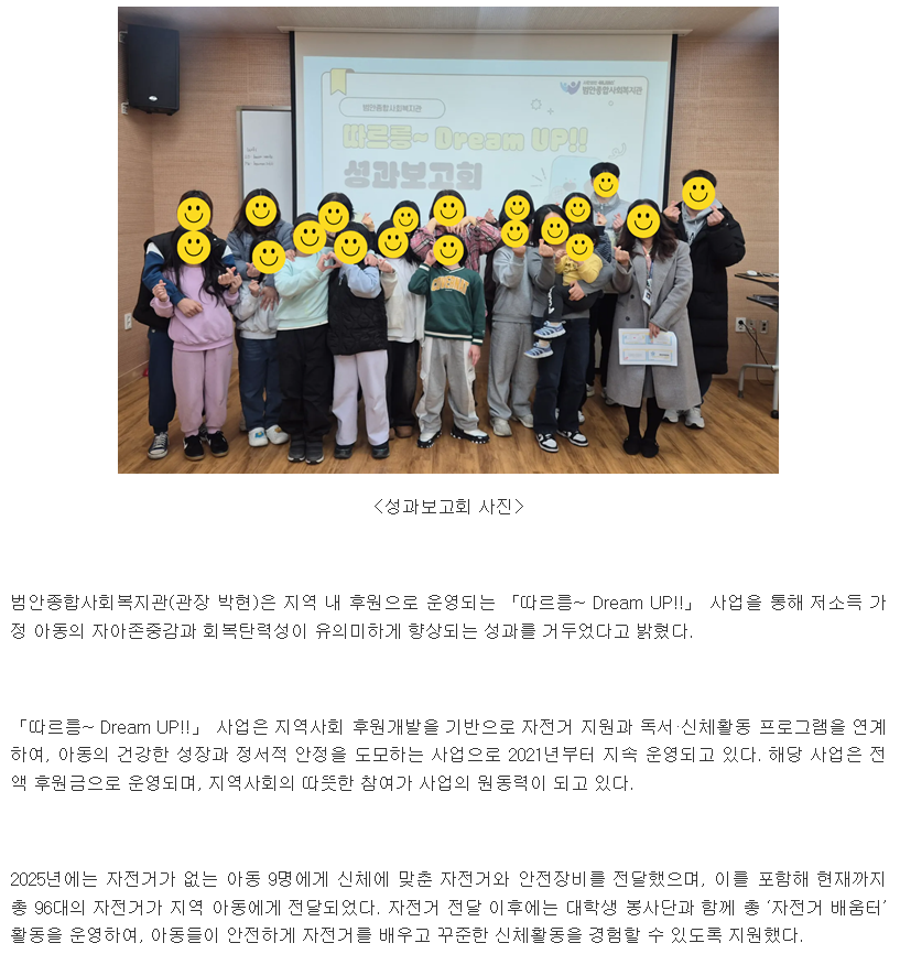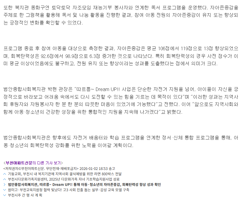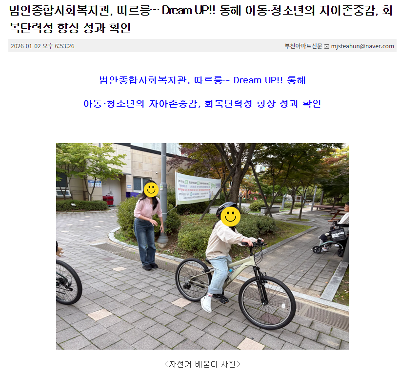 [¹ü¾ÈÁ¾ÇÕ»çȸº¹Áö°ü] µû¸£¸ª~ Dream UP!! ÅëÇØ ¾Æµ¿¡¤Ã»¼Ò³âÀÇ ÀÚ¾ÆÁ¸Áß°¨, ȸº¹Åº·Â¼º Çâ»ó ¼º°ú È®ÀÎ