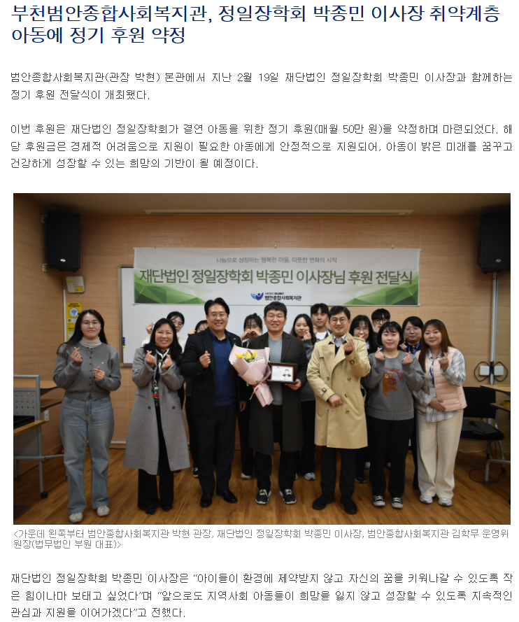 [¹ü¾ÈÁ¾ÇÕ»çȸº¹Áö°ü] Àç´Ü¹ýÀÎ Á¤ÀÏÀåÇÐȸ ¹ÚÁ¾¹Î ÀÌ»çÀå, Ãë¾à°èÃþ ¾Æµ¿¿¡ Èñ¸Á ÇÑ ½ºÇ¬, ¹ü¾ÈÁ¾ÇÕ»çȸº¹Áö°ü Á¤±â ÈÄ¿ø ¾àÁ¤