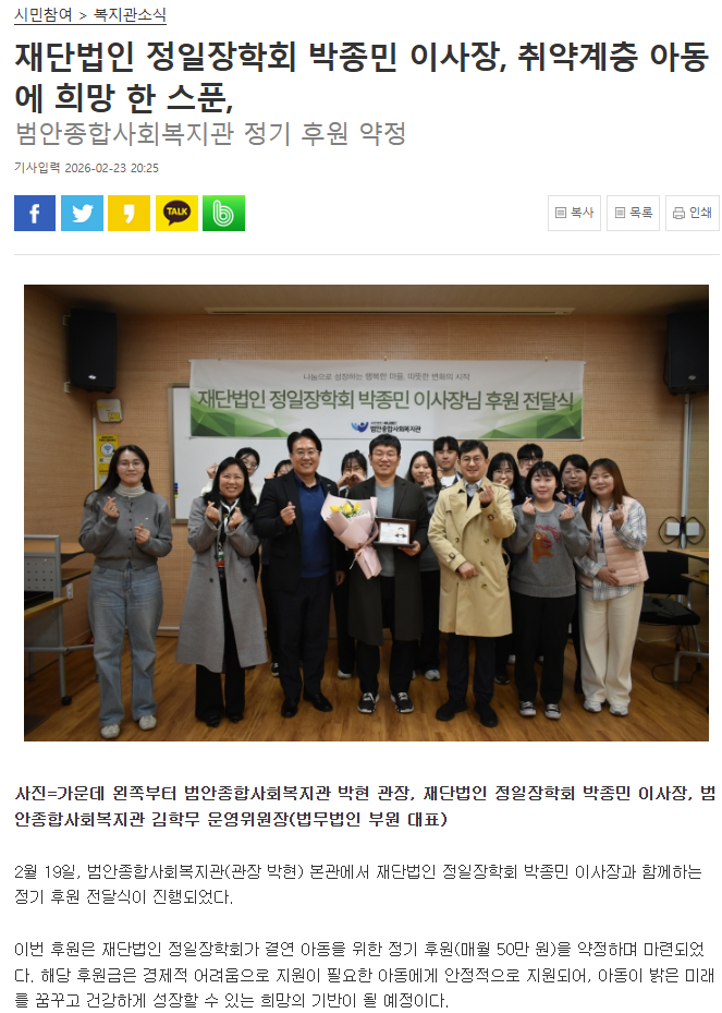 [¹ü¾ÈÁ¾ÇÕ»çȸº¹Áö°ü] Àç´Ü¹ýÀÎ Á¤ÀÏÀåÇÐȸ ¹ÚÁ¾¹Î ÀÌ»çÀå, Ãë¾à°èÃþ ¾Æµ¿¿¡ Èñ¸Á ÇÑ ½ºÇ¬
