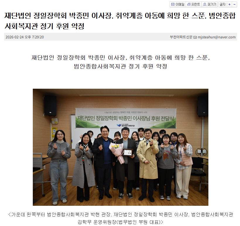 [¹ü¾ÈÁ¾ÇÕ»çȸº¹Áö°ü] Àç´Ü¹ýÀÎ Á¤ÀÏÀåÇÐȸ ¹ÚÁ¾¹Î ÀÌ»çÀå, Ãë¾à°èÃþ ¾Æµ¿¿¡ Èñ¸Á ÇÑ ½ºÇ¬