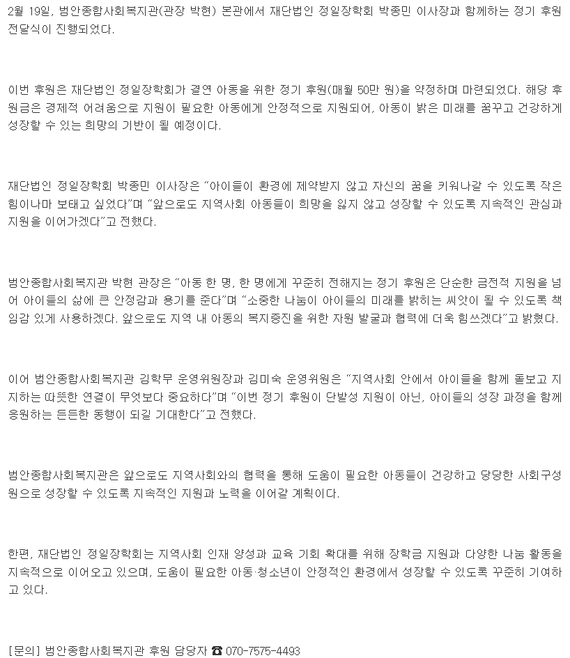 [¹ü¾ÈÁ¾ÇÕ»çȸº¹Áö°ü] Àç´Ü¹ýÀÎ Á¤ÀÏÀåÇÐȸ ¹ÚÁ¾¹Î ÀÌ»çÀå, Ãë¾à°èÃþ ¾Æµ¿¿¡ Èñ¸Á ÇÑ ½ºÇ¬, ¹ü¾ÈÁ¾ÇÕ»çȸº¹Áö°ü Á¤±â ÈÄ¿ø ¾àÁ¤