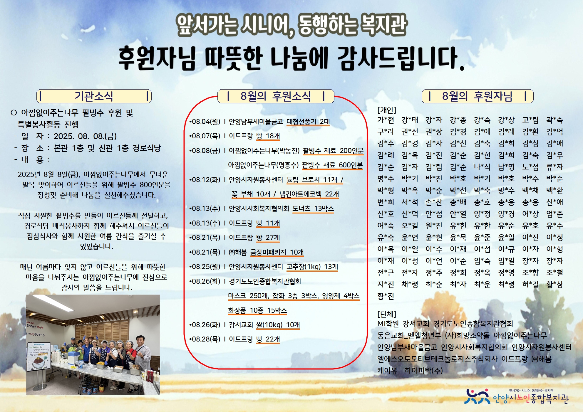[¾È¾ç½Ã³ëÀÎÁ¾ÇÕº¹Áö°ü] 8¿ù ÈÄ¿ø ÇöȲ ¹× °¨»çÀλç