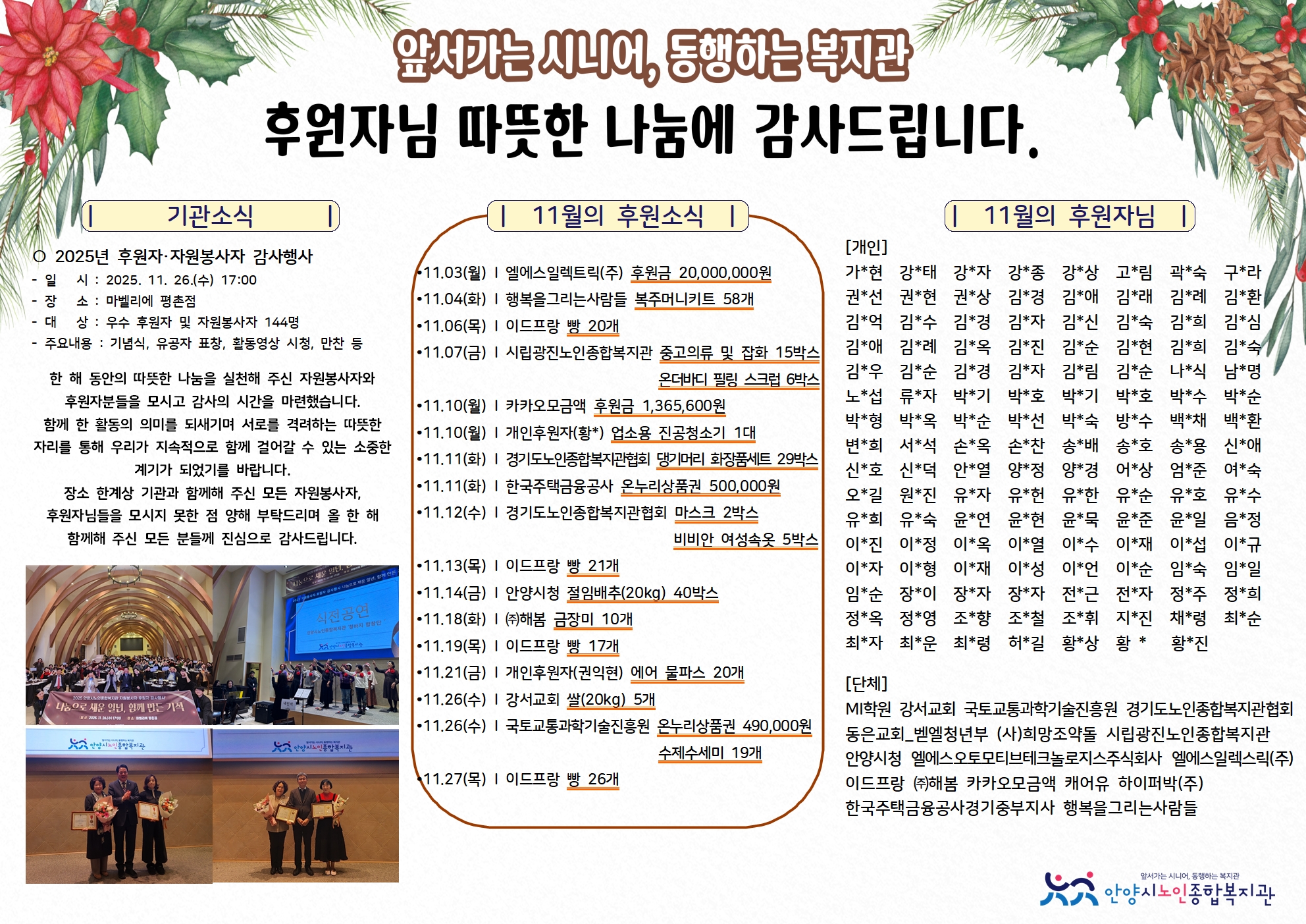 [¾È¾ç½Ã³ëÀÎÁ¾ÇÕº¹Áö°ü] 11¿ù ÈÄ¿ø ÇöȲ ¹× °¨»çÀλç