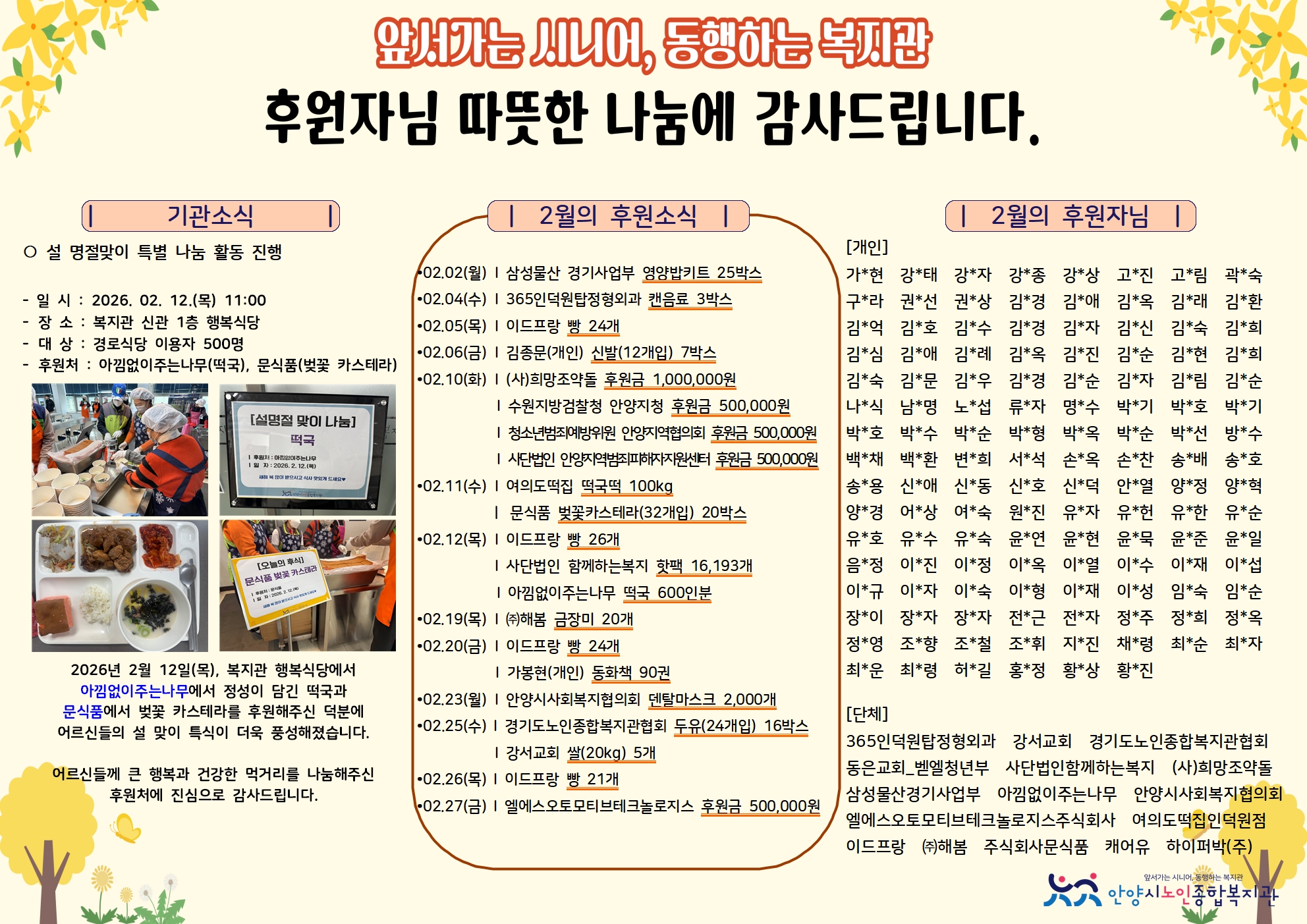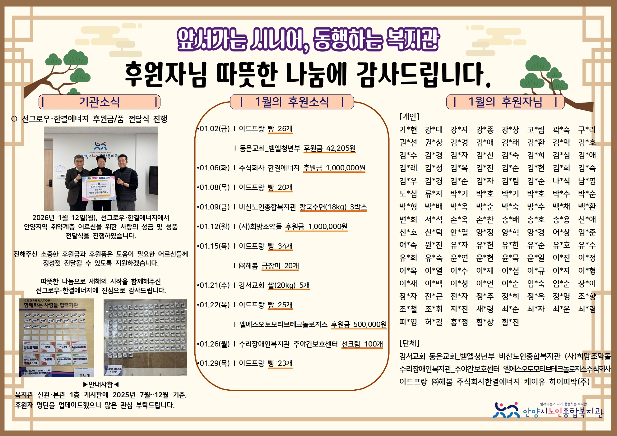 [¾È¾ç½Ã³ëÀÎÁ¾ÇÕº¹Áö°ü] 26³â 1¿ù ÈÄ¿ø ÇöȲ ¹× °¨»ç..