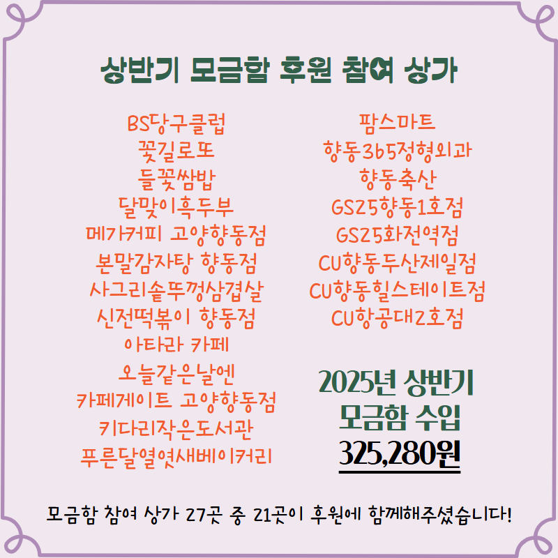 [°í¾ç½ÃÇ⵿Á¾ÇÕ»çȸº¹Áö°ü] 2025³â »ó¹Ý±â ¸ð±ÝÇÔ ÈÄ¿ø ÇöȲ