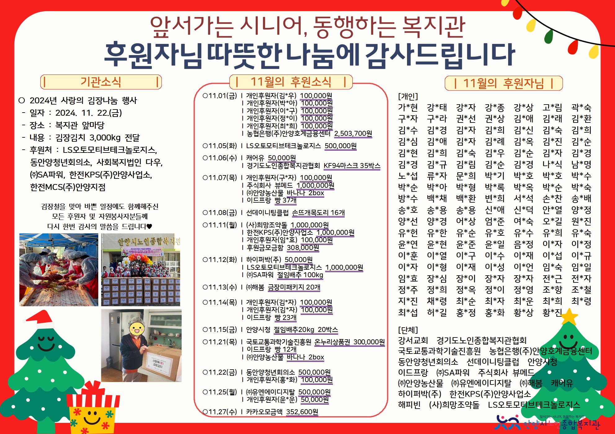 [¾È¾ç½Ã³ëÀÎÁ¾ÇÕº¹Áö°ü] 11¿ù ÈÄ¿ø ÇöȲ ¹× °¨»çÀλç