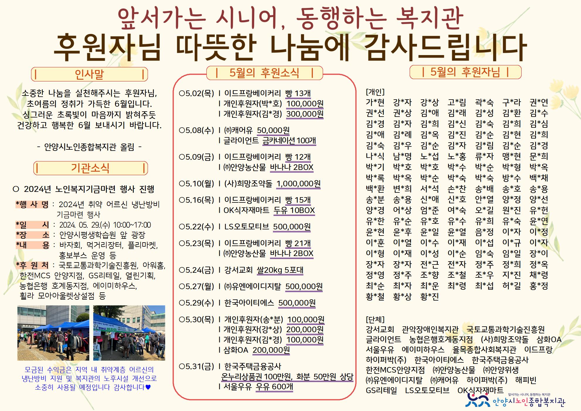 [¾È¾ç½Ã³ëÀÎÁ¾ÇÕº¹Áö°ü] 5¿ù ÈÄ¿øÇöȲ ¹× °¨»çÀλç