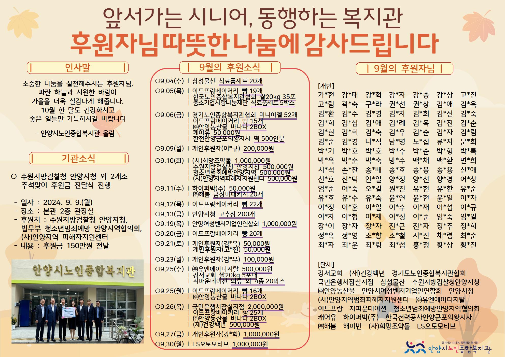 [¾È¾ç½Ã³ëÀÎÁ¾ÇÕº¹Áö°ü] 9¿ù ÈÄ¿øÇöȲ ¹× °¨»çÀλç