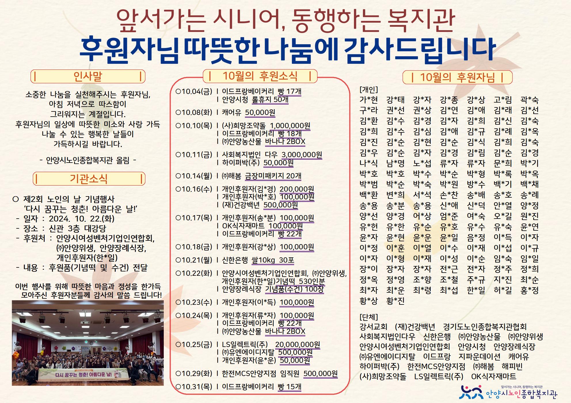 [¾È¾ç½Ã³ëÀÎÁ¾ÇÕº¹Áö°ü] 10¿ù ÈÄ¿ø ÇöȲ ¹× °¨»çÀλç
