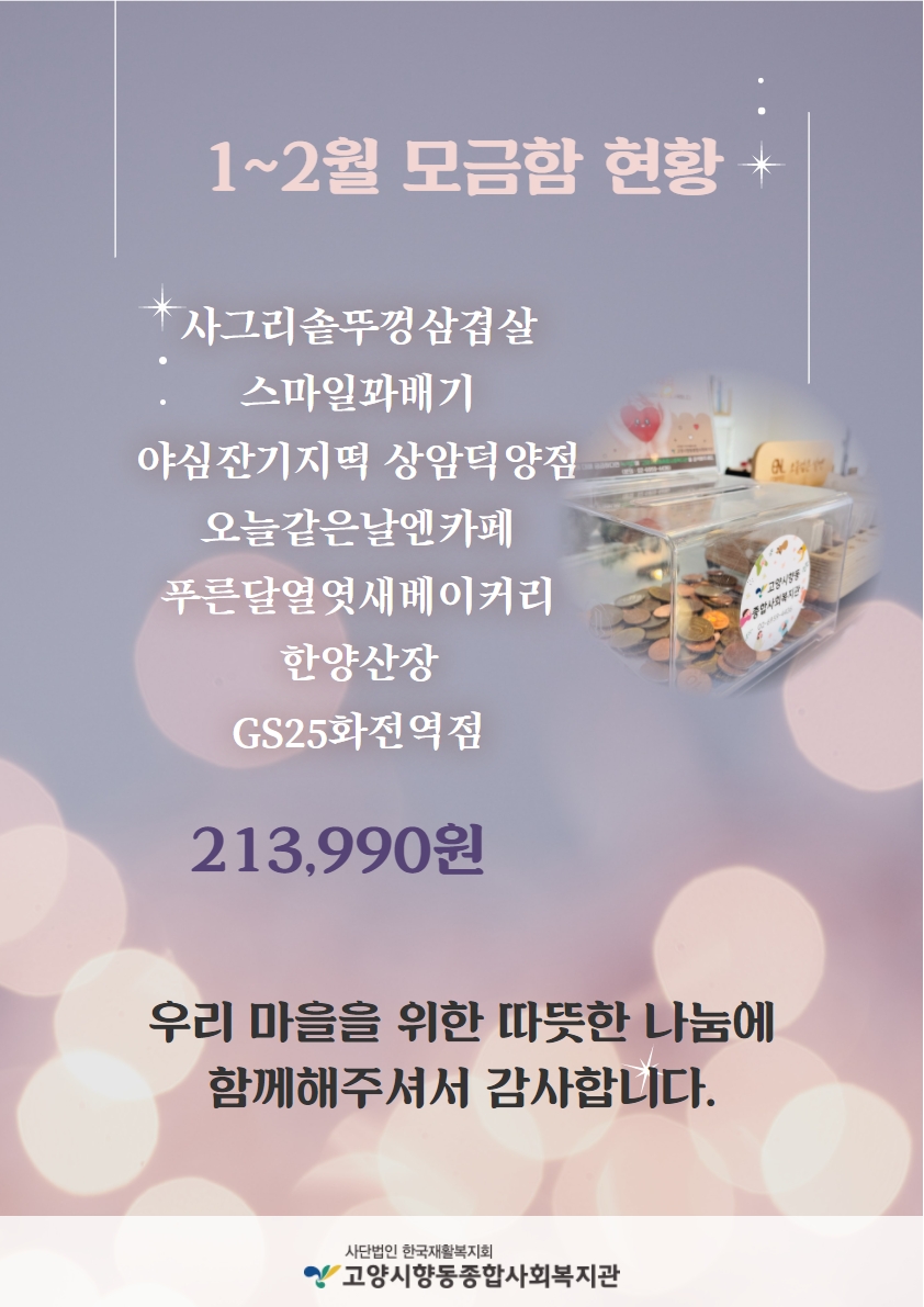 [°í¾ç½ÃÇ⵿Á¾ÇÕ»çȸº¹Áö°ü] 1~2¿ù ¸ð±ÝÇÔ ÇöȲ