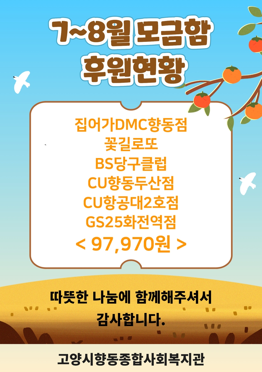 [°í¾ç½ÃÇ⵿Á¾ÇÕ»çȸº¹Áö°ü] 7~8¿ù ¸ð±ÝÇÔ ÇöȲ