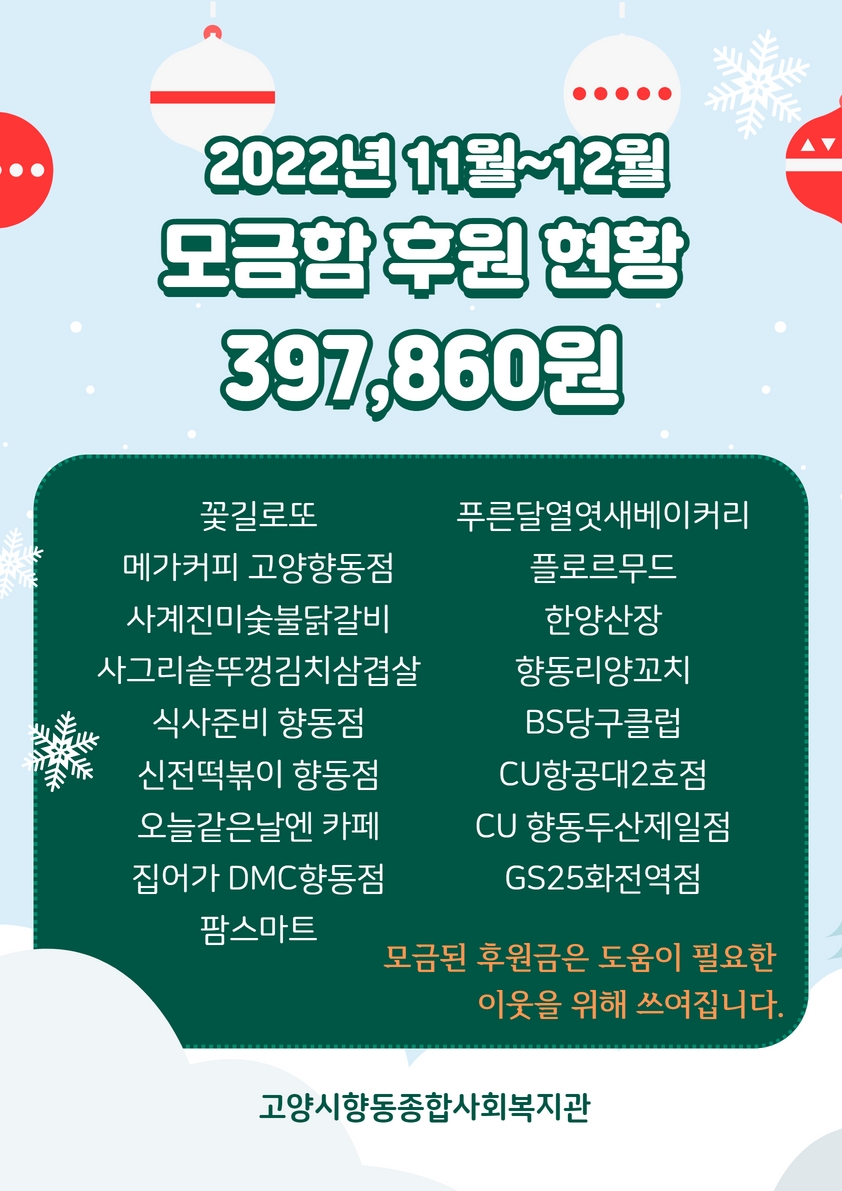 [°í¾ç½ÃÇ⵿Á¾ÇÕ»çȸº¹Áö°ü] 11¿ù~12¿ù ¸ð±ÝÇÔ ÇöȲ