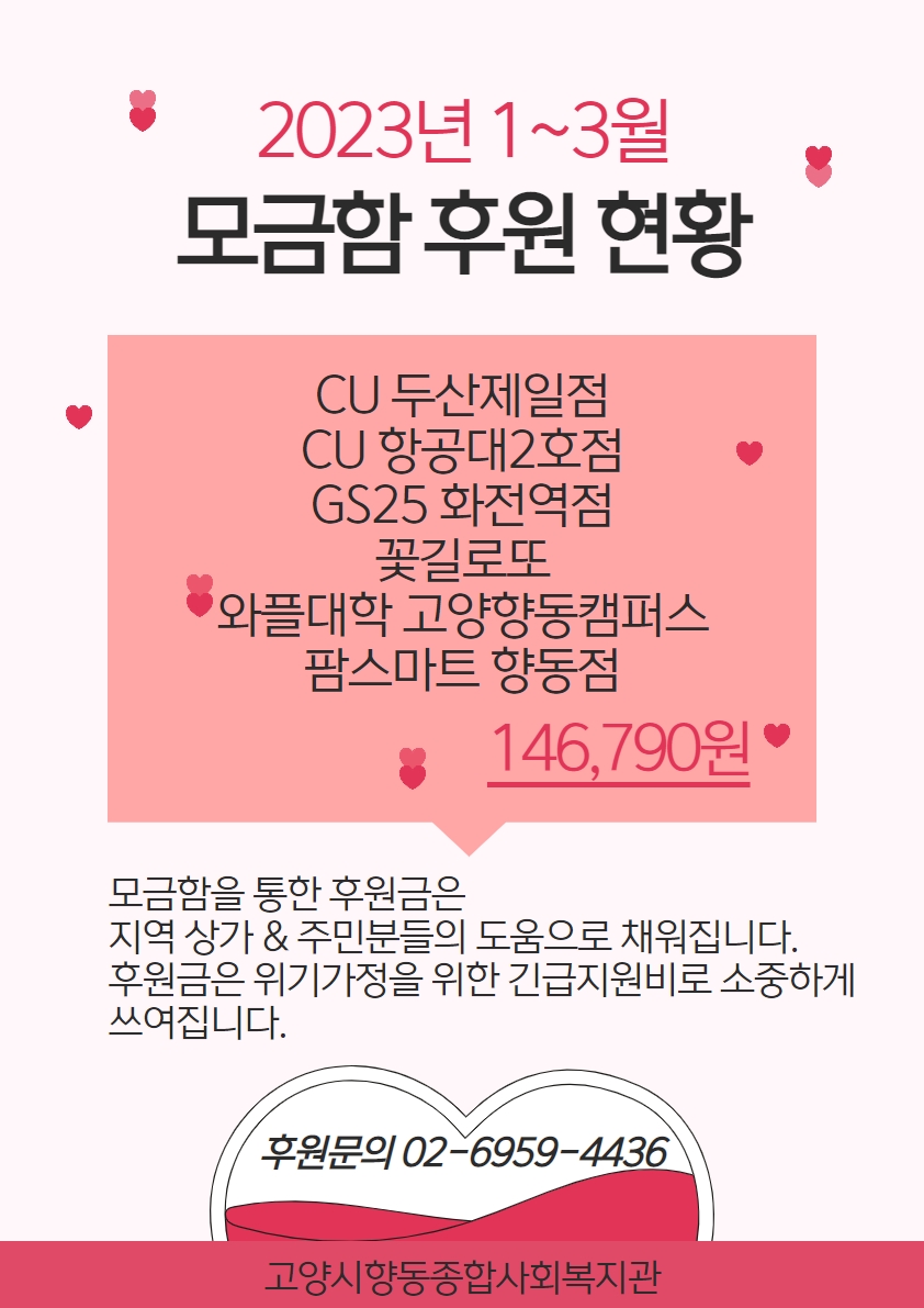 [°í¾ç½ÃÇ⵿Á¾ÇÕ»çȸº¹Áö°ü] 2023³â1~3¿ù ¸ð±ÝÇÔ ÈÄ¿ø..